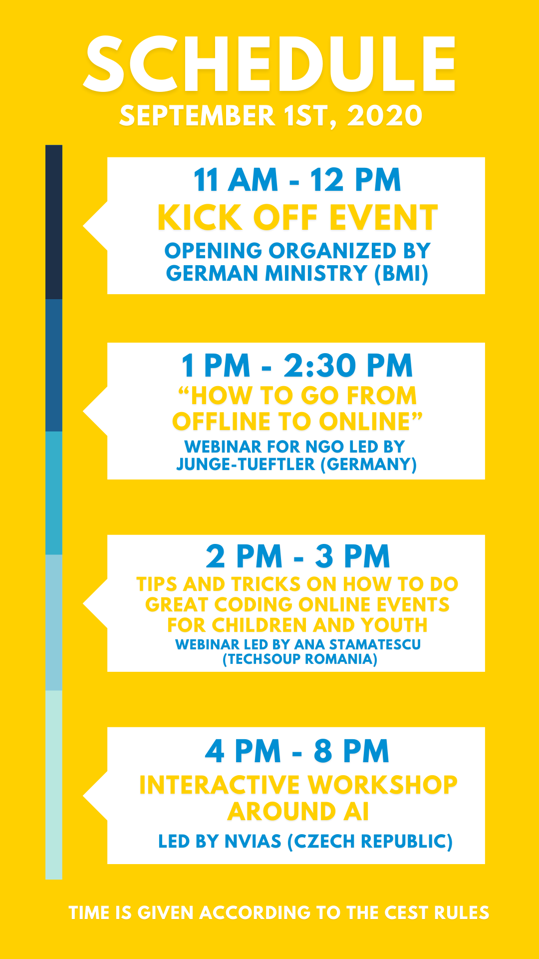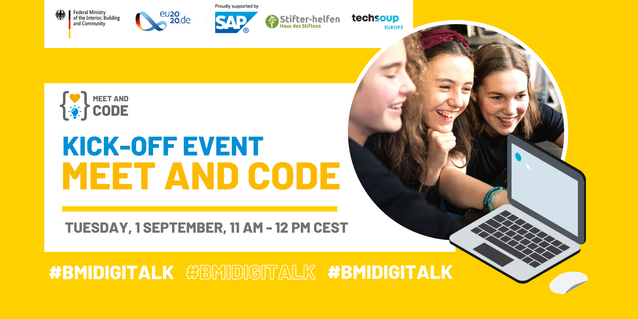 Am 1. September um 11.00 Uhr MEZ wird Dr. Markus Richter, Staatssekretär im Bundesministerium des Innern, für Bau und Heimat und Beauftragter der Bundesregierung für Informationstechnik, Hartmut Thomsen (Präsident Mittel- und Osteuropa, SAP) und Fabrizia Benini, Leiterin des Referats Digital Economy and Skills der Europäischen Kommission den virtuellen Startschuss für Meet and Code 2020 geben! Nehmt an einem einstündigen Livestream teil (11.00-12.00 Uhr), trefft europäische gemeinnützige Organisationen, die sich bereits für unsere Förderung beworben haben, und erfahrt mehr über die Online-Coding, die der jungen Generation neue digitale Fertigkeiten vermittelt.
