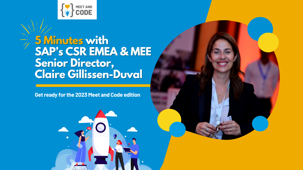 Kurz bevor es los geht mit Meet and Code 2023, haben wir uns mit Claire Gillissen-Duval, Senior Director für SAP EMEA und MEE Corporate Social Responsibility (CSR), unterhalten, und sie gefragt, worauf sie sich dieses Meet and Code Jahr besonders freut.
