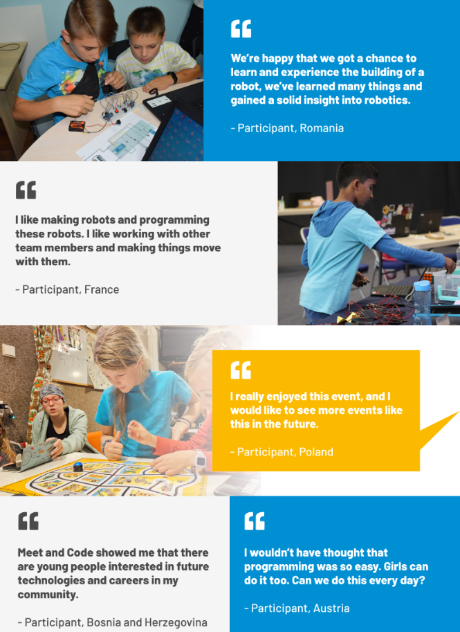 47 % der Teilnehmer:innen kamen aus benachteiligten und unterrepräsentierten Gesellschaftsschichten, 41 % waren Frauen. 43 % der Teilnehmer:innen stammen aus einkommensschwachen Haushalten, 22 % hatten einen Migrationshintergrund und 11 % waren Flüchtlinge. Die Auswirkungen auf die Programmierkenntnisse der Teilnehmer:innen waren beträchtlich: Über 72 % gaben an, dass die Veranstaltung wesentlich zu ihrem Verständnis des Programmierens beigetragen hat, womit der Bildungseffekt der Initiative erneut unterstrichen wird.