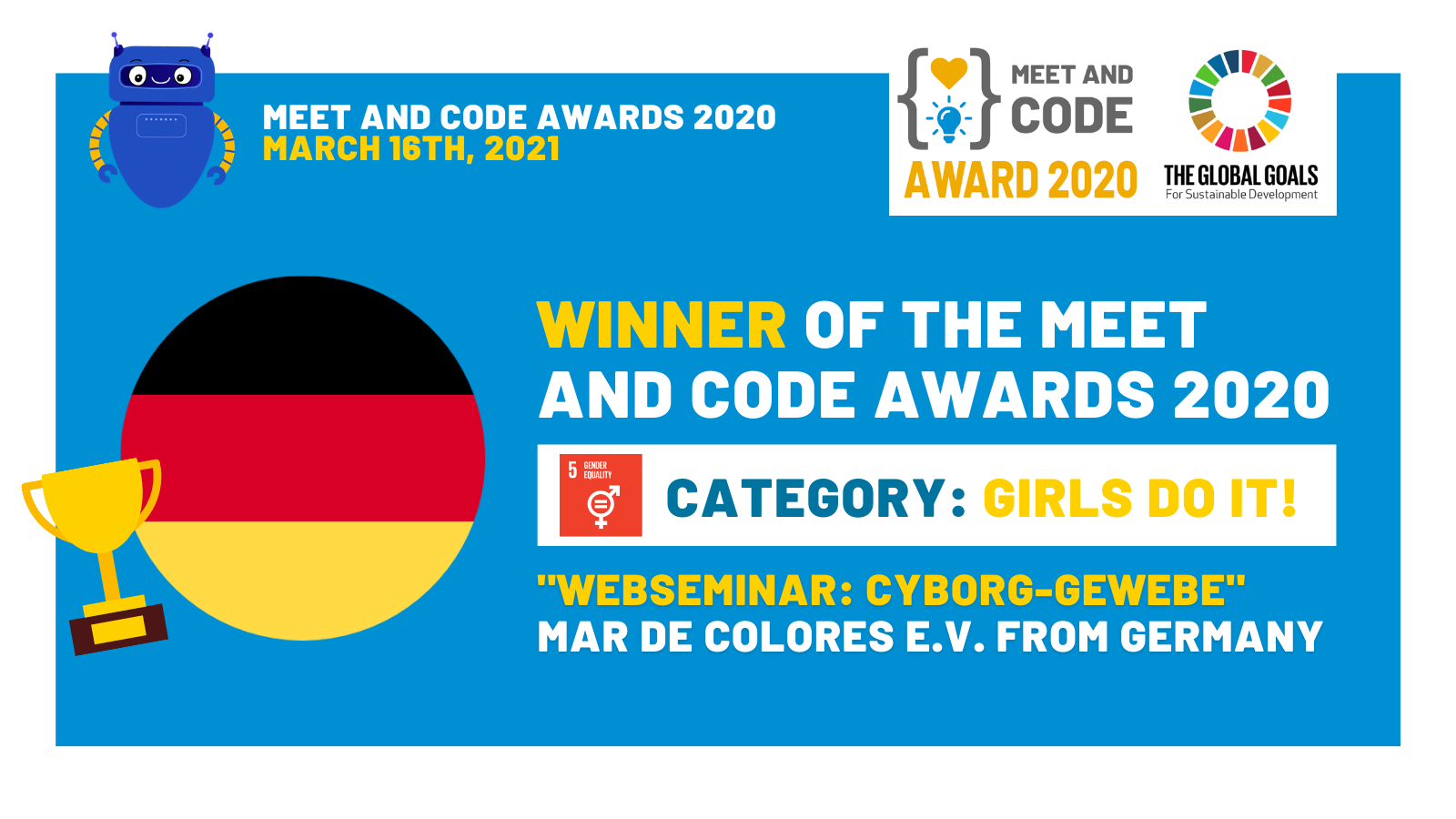 Während der virtuellen Meet and Code Award Ceremony am 16. März 2021, wurde das Projekt zum Gewinner der Kategorie "Girls do IT!" ernannt. Herzlichen Glückwunsch