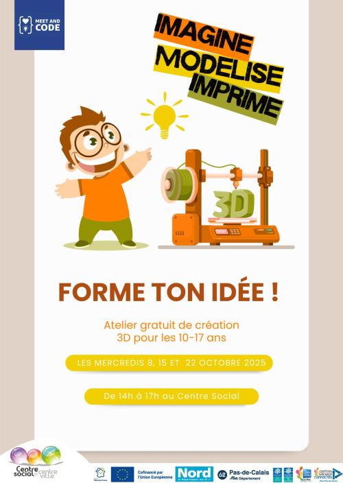 L’événement "Mon idée prend forme" est un atelier en trois séances dédié à l’initiation à la modélisation et à l’impression 3D pour un groupe de 20 jeunes âgés de 10 à 16 ans. Les participants apprendront à concevoir des objets numériques en 3D grâce à des outils accessibles comme Tinkercad, puis à les préparer pour l’impression 3D via des logiciels de “slicing” comme Cura. À la fin de l’événement, chaque jeune repartira avec un objet personnalisé qu’il a lui-même imaginé, modélisé et imprimé.